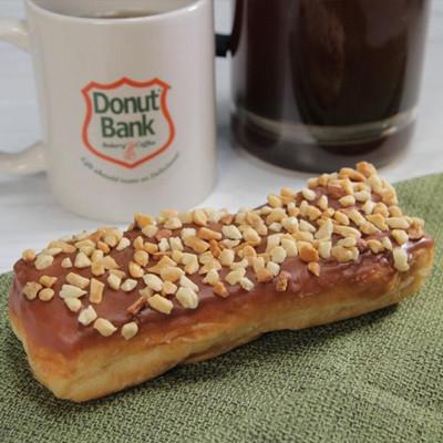 Taste our amped up version of a long john. Chocolate iced donuts covered with delicious roasted and chopped peanuts.